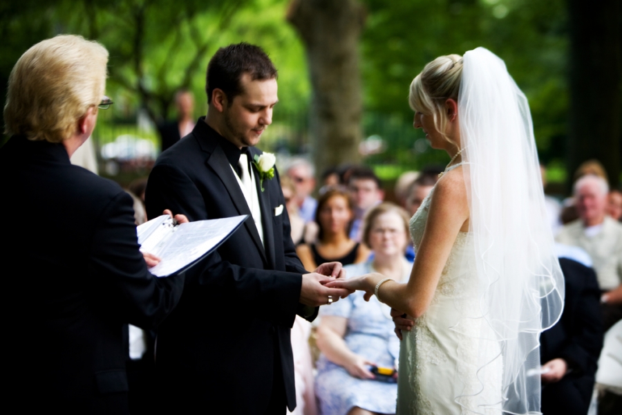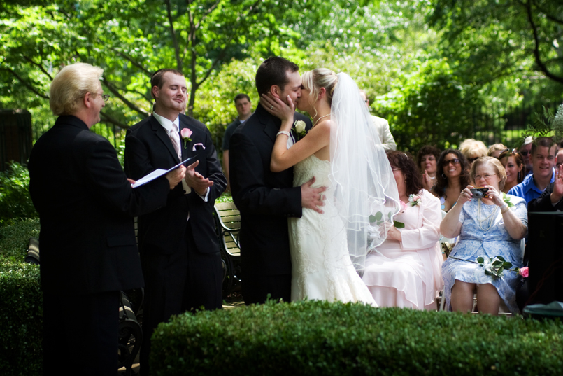 Sara and Dave had a garden ceremony in Tower Grove park last weekend with a reception at La Chateau in Frontenac. I think most of their family had camera envy – several of them were asking me what I was shooting with, and I overheard a few comments about the size of my lens. Dave’s mom even caught a few shots of me throughout the night with her camera (despite my best attempts to hide.) You have to love people who value photography! Congrats to them, and I hope they are having a great time on their honeymoon in Vegas!