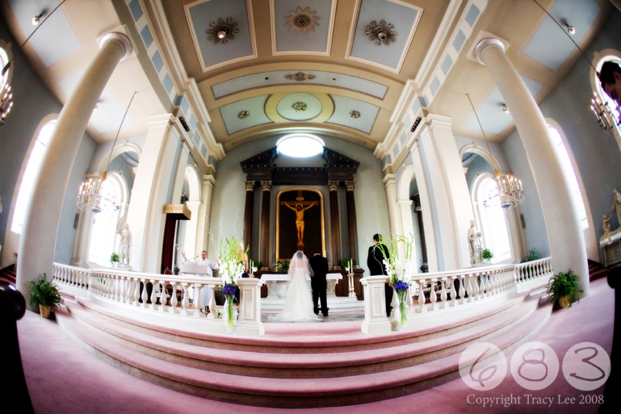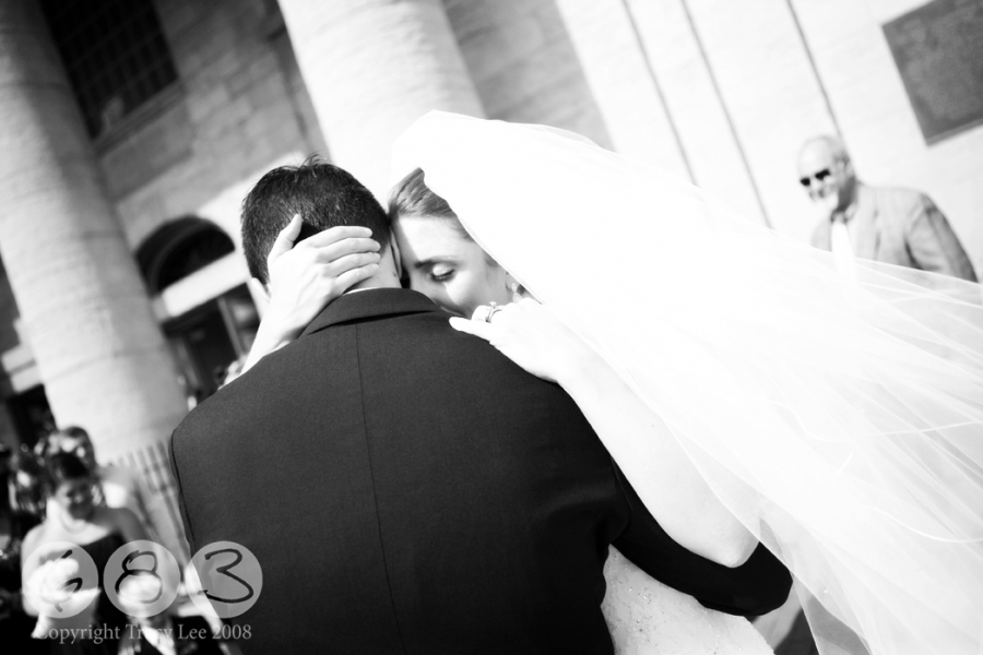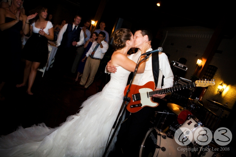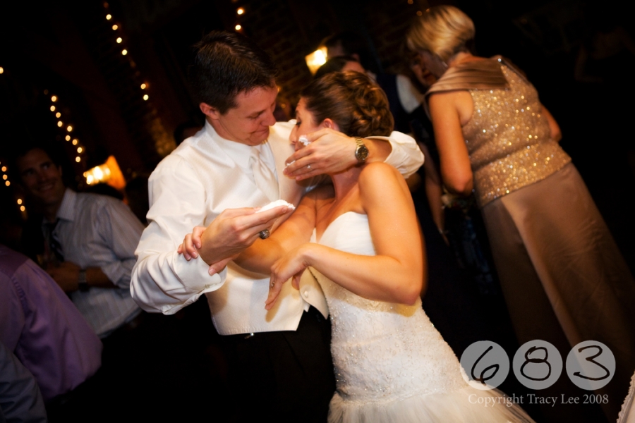 These guys live in Houston, and they just barely made it away from Ike for the wedding. Some of their friends and family didn’t make it out for the celebration, but it was still a great party. The ceremony was at the Old Cathedral, with a reception at the Lemp Mansion. Fortunately the rain held off for the outdoor reception (something that the bride and groom were thankful for all night!) For a few songs Johnson joined the band to play the guitar and sing – that really got the crowd going. There were so many cake photos because Johnson didn’t quite play fair. They did the traditional cake cutting, serving with forks and being very classy. Then right after that (and after the videographer had left the area and could no longer document it) Johnson grabbed another slice of cake and attacked Courtney with it. She fought hard, but in the end she did have frosting smeared on her face. Honestly, it was pretty funny, and she had a good sense of humor about it. Plus I got a lot of funny shots, so I’m for it :)