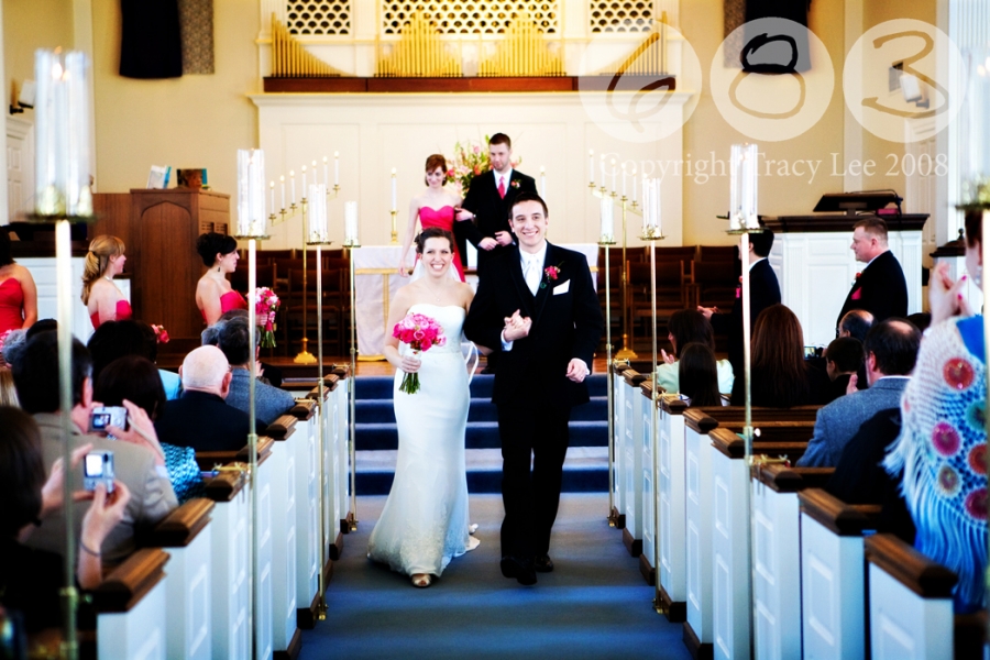 Hot pink was the color of the day for Sarah and Dan’s wedding on March 14th. Bridesmaids dresses, flowers, reception lighting – they even both had hot pink shoes to wear at the reception! What a fantastic color for photos. The pink light at the reception at Mad Art posed a bit of a challenge for me at first, but in the end I think it made some really cool ambient lighting for their dancing photos. The ceremony was at First United Methodist in St. Charles, which had some pretty great light of its own with all those big windows. Add in the sunshine and warm weather (slightly unexpected in March), and let’s just say it was a good day for shooting!
