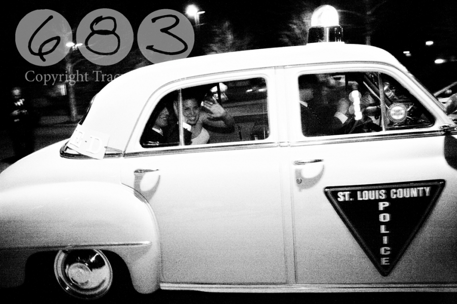 I stayed until the end of the reception to catch the couple’s exit, which was pretty entertaining. As a surprise, Sarah’s mom rented a vintage police car to escort the couple from the reception to their hotel. They even had a police officer handcuff Sarah and lead her and Dan out to the car – they were both a little shocked, but I’m pretty sure they enjoyed it!