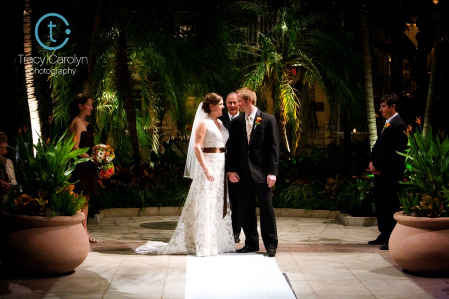 It was my fault, really.  We took portraits before the ceremony, and I’d asked Ashley and Donald to put the rings on a little early so we could be sure to get the ring shot.  All went according to plan until Donald tried to slip the ring back off.  It was thoroughly stuck.  Apparently Donald recently had surgery on his knuckles, which made them more sensitive to swelling, and his ring finger was highly resistant.  After some serious prodding (and a little bit of panic), Donald finally yanked the ring off, and proceeded to ice his poor swollen finger.  Ugh – photographer fail.  Donald was so nice to assure me it wasn’t a big deal and that everything would be fine (I still felt terrible.)  I had some concern that he’d even be able to get the ring back on his finger during the ceremony, but fortunately Ashley knew to put a little extra muscle into the ring exchange.  Donald’s knuckle made a pretty loud popping sound, but she got that ring on there – and I’m willing to bet she never has to worry about it coming off :)