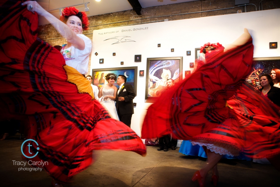 They met in a dance troupe ages ago.  Back then, they had no interest in one another.  But over the years, that somehow changed, and Lauren and Felipe became a couple – a really good dancing couple :)  They were married Saturday at Good Shepherd Catholic Church with a reception at the Artwork Network.  The reception featured a mariachi band, their dance troupe friends in full costume, and some pretty incredible dancing by the bride and groom.  What a great party!