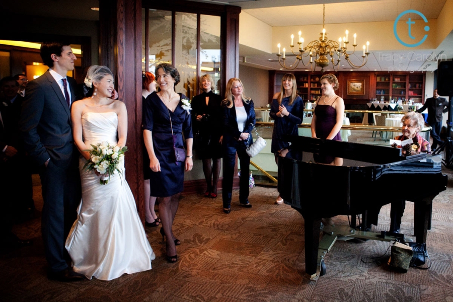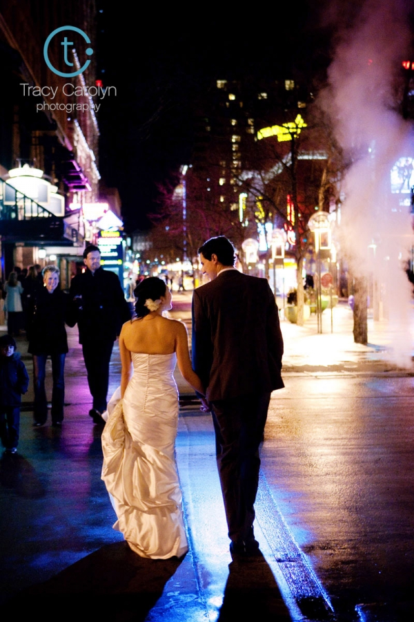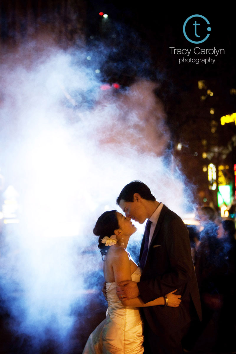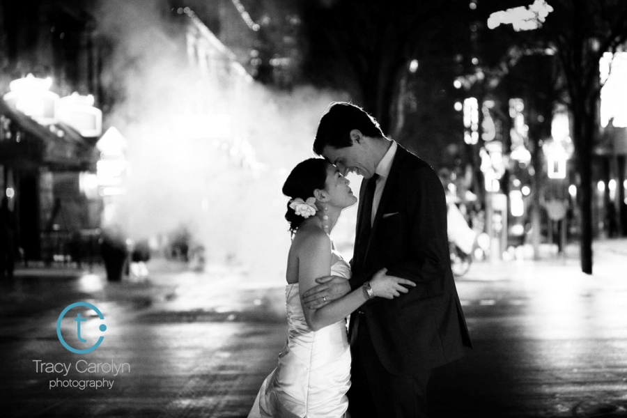 After their ceremony at Trinity United Methodist Church, John and Jenny walked to their reception at The Pinnacle Club at the Grand Hyatt. Upon their entrance, John’s family serenaded the couple with a rendition of “L-O-V-E”, accompanied by grandma on the piano. Adorable. The rest of the night was filled with celebration – and oh so much dancing. So much dancing that John and Jenny were grateful for a little fresh air as we stepped outside for a few minutes for some nighttime photos. The rain had passed, the city lights twinkled brightly, and the steam rose out of the street in huge waves. Photographer heaven :)