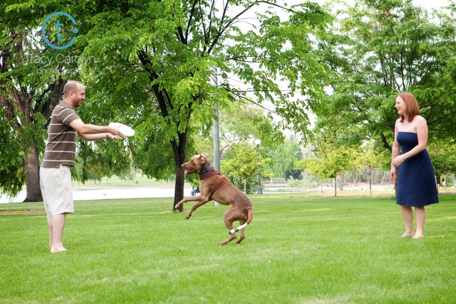 When we brainstormed ideas about what to do for their photo session, Leslie and Peter wanted to do something true to who they are.  So we settled on a date night Leslie and Peter style -playing frisbee with the dog, taking a walk around City Park, and having a picnic with a nice glass of wine.  A nice evening, and a nice shoot.  These two are so comfortable with one another, and so expressive, that I had an easy time getting photos of them.  We had some gorgeous light at the end, too.  Not a bad way to spend your Friday evening :)