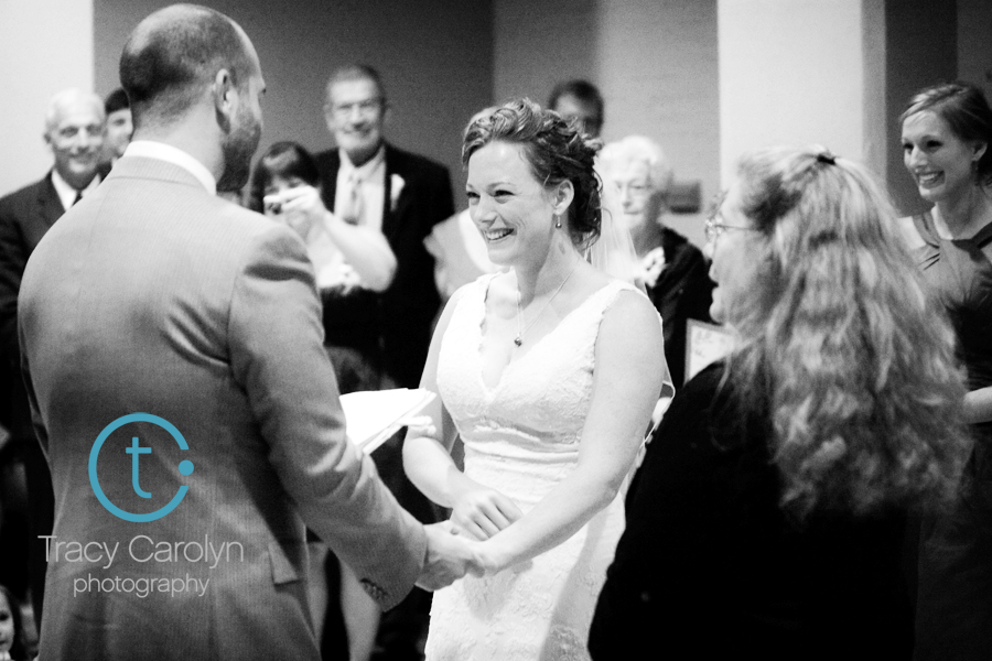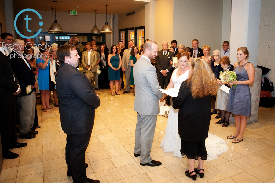 And so, Leslie and Peter were married in the lobby of the Ice House building. It might not have been the ceremony they planned, but these two hardly seemed upset about it. In the end they still got to say their vows and exchange rings, so the ceremony was a success.