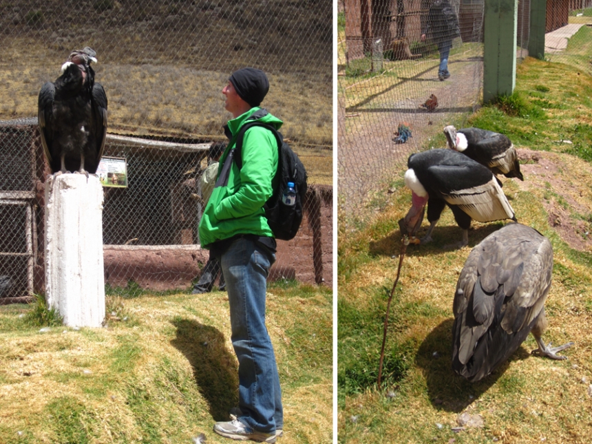 At this animal sanctuary in Pisac, Peru, they let you wander around in the condor cage. Then the giant birds fly over your head in the impressive way that only a bird with the largest wingspan in the world can do. It was cool.