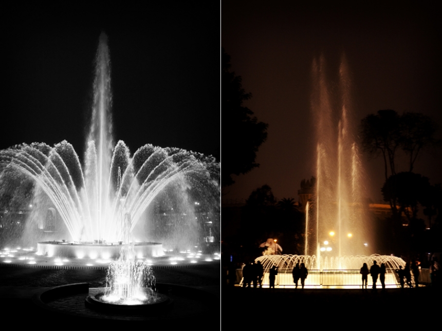 All of this to say that our big Saturday night out this week wasn’t to visit the clubs or bars, but to see the Circuito Magico del Agua – a family friendly park full of fountains that lights up at night. As soon as we walked in (after leaving the drunken crowds of Mistura), we knew we had arrived in our element.