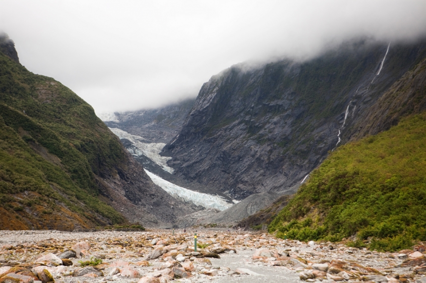 I think the waterfalls at Franz Josef were actually more spectacular than the glacier. You can’t see much of the ice from the hike because it has receded so far into the mountains, and it is covered in rocks and dirt. The thick layer of fog doesn’t help either.