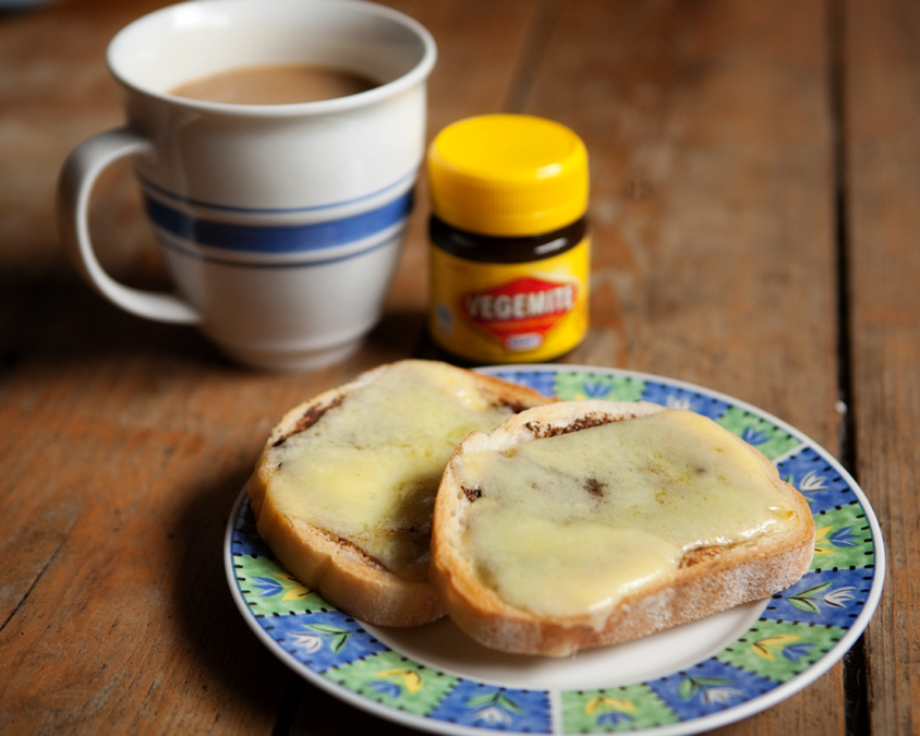 I remember trying Vegemite in elementary school, for some odd reason, and thinking it was gross. Probably because they just smeared a blob of it on a cracker and fed it to us. I now know that this is not the correct way to serve Vegemite. Made from brewers yeast, Vegemite has a salty, savory flavor. A little goes a long way, so it’s no wonder a blob of it would not impress an eight year old.