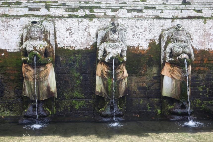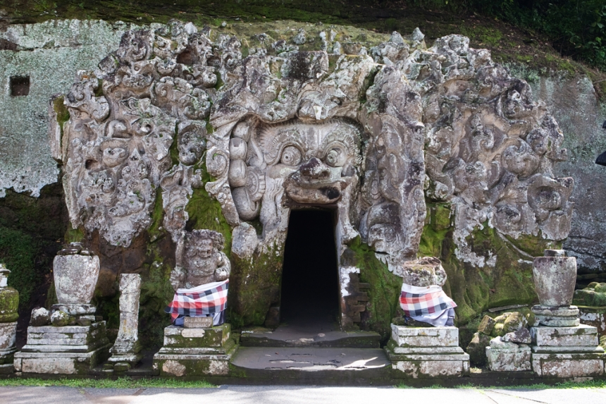 We then headed to Goa Gajah, or the Elephant Cave Temple.  The mouth of the cave is ornately carved, and inside are a few small shrines and small spaces where people come to meditate.