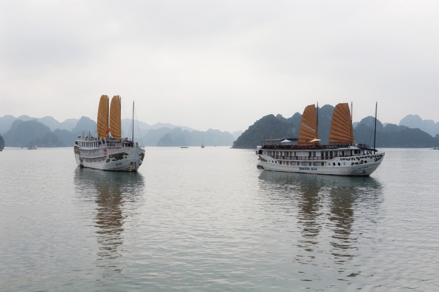 A cruise in Halong Bay is like freshman year in college: you spend hours sitting outside, chatting about life with a bunch of Canadians and drinking cheap beer while some guy strums an acoustic guitar.