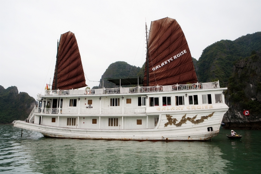 This was our boat – the Galaxy Cruise.  We spent two days and one night on our cruise, sailing around the bay with its 2,000 limestone islets.  Our cabin was super nice (minus the mildewy smell that happens on boats,) and the top deck was perfect for watching the views.