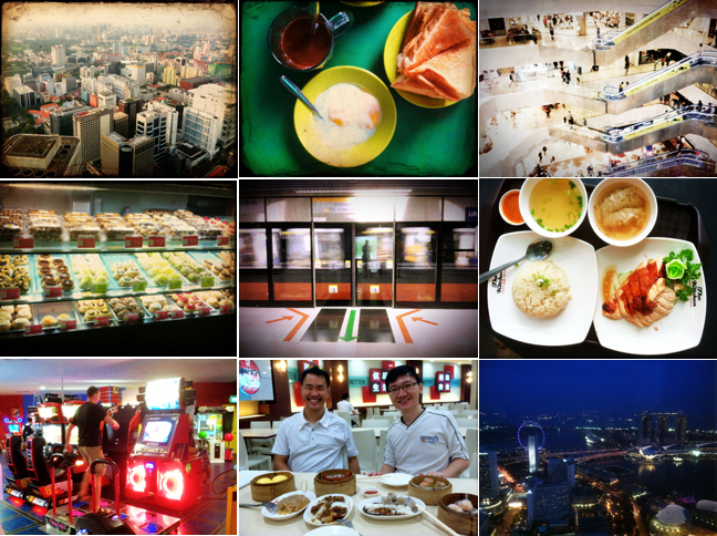 In a country where citizens are glued to their iphones and ipads, it seemed only appropriate to document our trip with my own idevice. I have real photos coming soon, but here are a few low-quality snaps from our weekend in Singapore, from top left to bottom right: