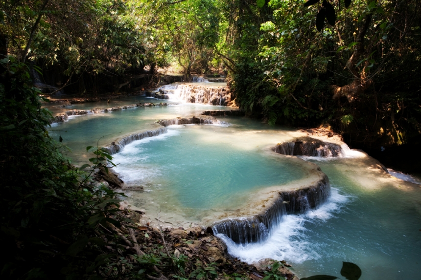 This particular guy is the kind of American who makes all of us look bad. You could smell the booze seeping from his pores, and as he approached us (wearing aviator sunglasses, brandishing a cigarette and drinking straight out of a liter beer bottle), I immediately wanted to run in the other direction. Fortunately, he seemed more interested in swimming than chatting, and after a few moments he jumped into the pristine natural waters with his beer and cigarette still in hand, and floated off under one of the waterfalls, aviators still on, to continue drinking alone. I apologize to the country of Laos that we in the US produce deuchebags like that. (Sorry, but that’s just the best word to describe him.)