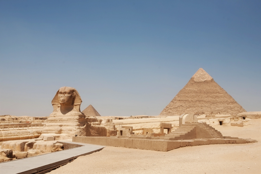 The second largest pyramid is Khafre’s pyramid, built by the son of Khufu.  Though it is smaller in size, it was once covered in limestone, making it slightly more beautiful than the larger pyramid.