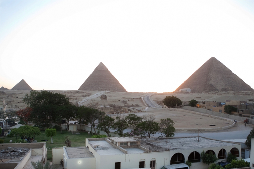 As we drove along the highway next to shopping malls, upscale condo buildings, and the construction site of a brand new Ikea, I caught my first glimpse of the Great Pyramids of Giza looming off in the distance.  I must admit, I hadn’t quite expected to meet the pyramids in this manner.  Though I had read that the city of Cairo butts up right against the site of the ancient ruins, I had still expected some sort of buffer between them and the city.  And I certainly hadn’t anticipated the Ikea.