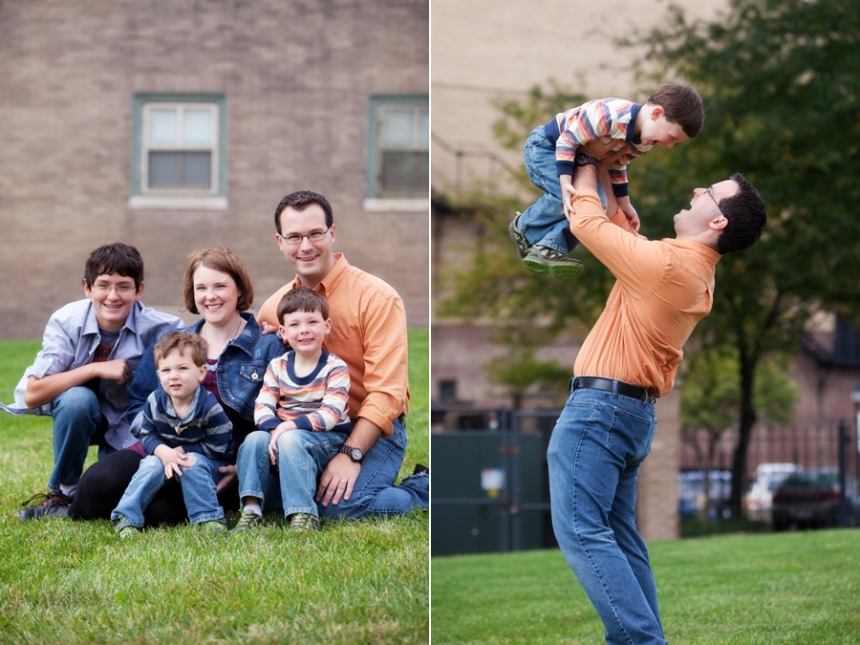 Then it was time for the boys (Kevin included) to climb up and slide down everything in sight!After a little time at the museum, Sarah and I decided we needed to get these boys out into a park for some fresh air (and better light!)  I love how much fun this family has playing with each other.  They make it so easy.Still so happy and in love…This was an idea Sarah saw on Pinterest.  I think in theory the boys would be sitting politely and smiling at the camera, but I actually love that they aren’t.  To me this image represents this family:  Sarah and Kevin happily smiling while their boys dogpile in the background.  Love it.To Kevin and Sarah – as always, it was a treat to photograph your family.  Thank you for filling your Monday with play and letting me photograph it!