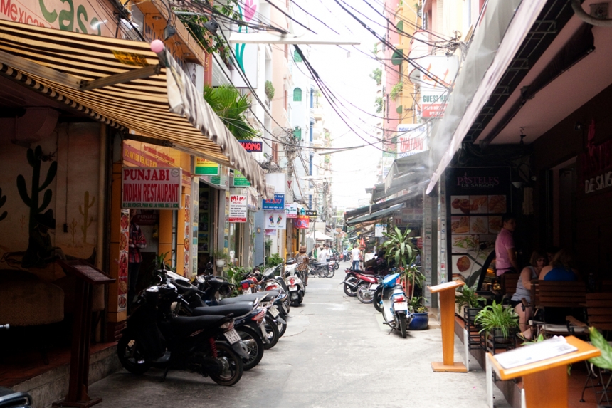 John dubbed the city “street food heaven” because of the endless stalls and carts selling delicious smelling food. I’m not usually as into street food as John is (since it’s usually roasted meat), but in Vietnam there are vegetarian-ish options everywhere. The Vietnamese sandwich I had for breakfast on our first day in Saigon may have been the best thing ever, and I’m certain that pho eaten on a plastic stool in an alleyway has more personality than any you’d get in a regular restaurant.