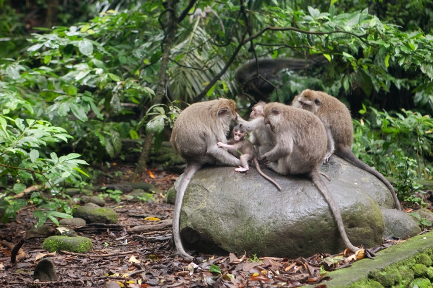 We have been to many, many places that claim to offer monkey sightings for tourists. Usually what they have to offer is the possibility of seeing a monkey, from a distance, up in a tree somewhere. If you’re lucky. The Sacred Monkey Forest in Ubud is about as far from that as it gets.