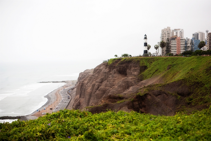 All winter long, a grey cloud sits over Lima, keeping it cloudy and 60 degrees all day long – midnight and noon feel the same. The city itself is no beauty, with giant grey buildings jutting up into the grey sky. The photo above is the view from our apartment. What looks like a park is actually the Brazilian Embassy, and what looks like a relatively quiet street is a traffic thoroughfare, whose loud honking we can hear all day long from our 9th floor unit.